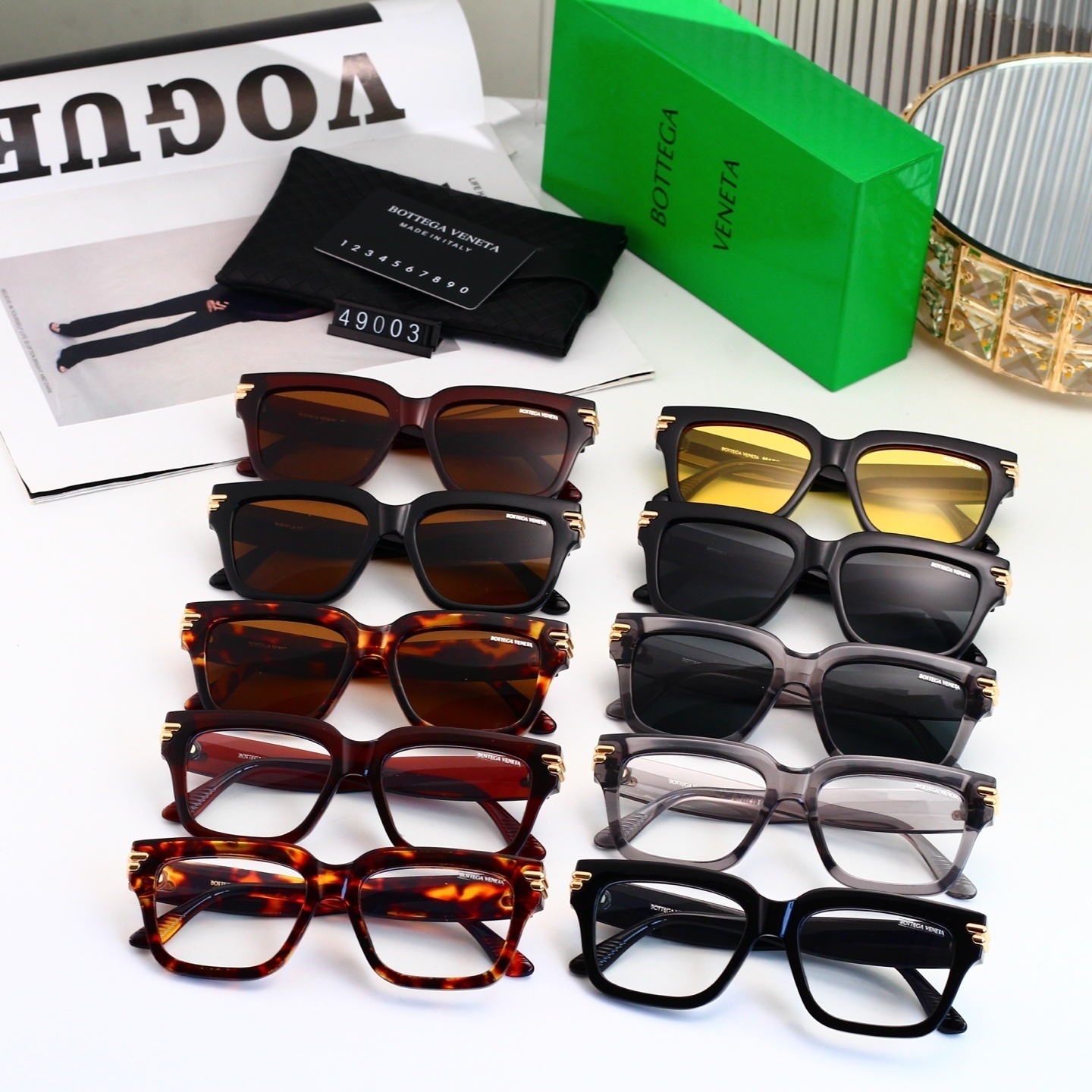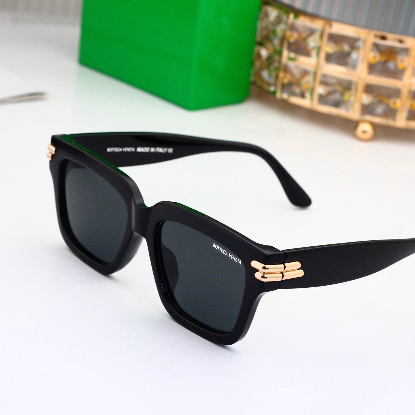 Bottega Veneta Classic Thick Square UV Protection Sunglasses 49003