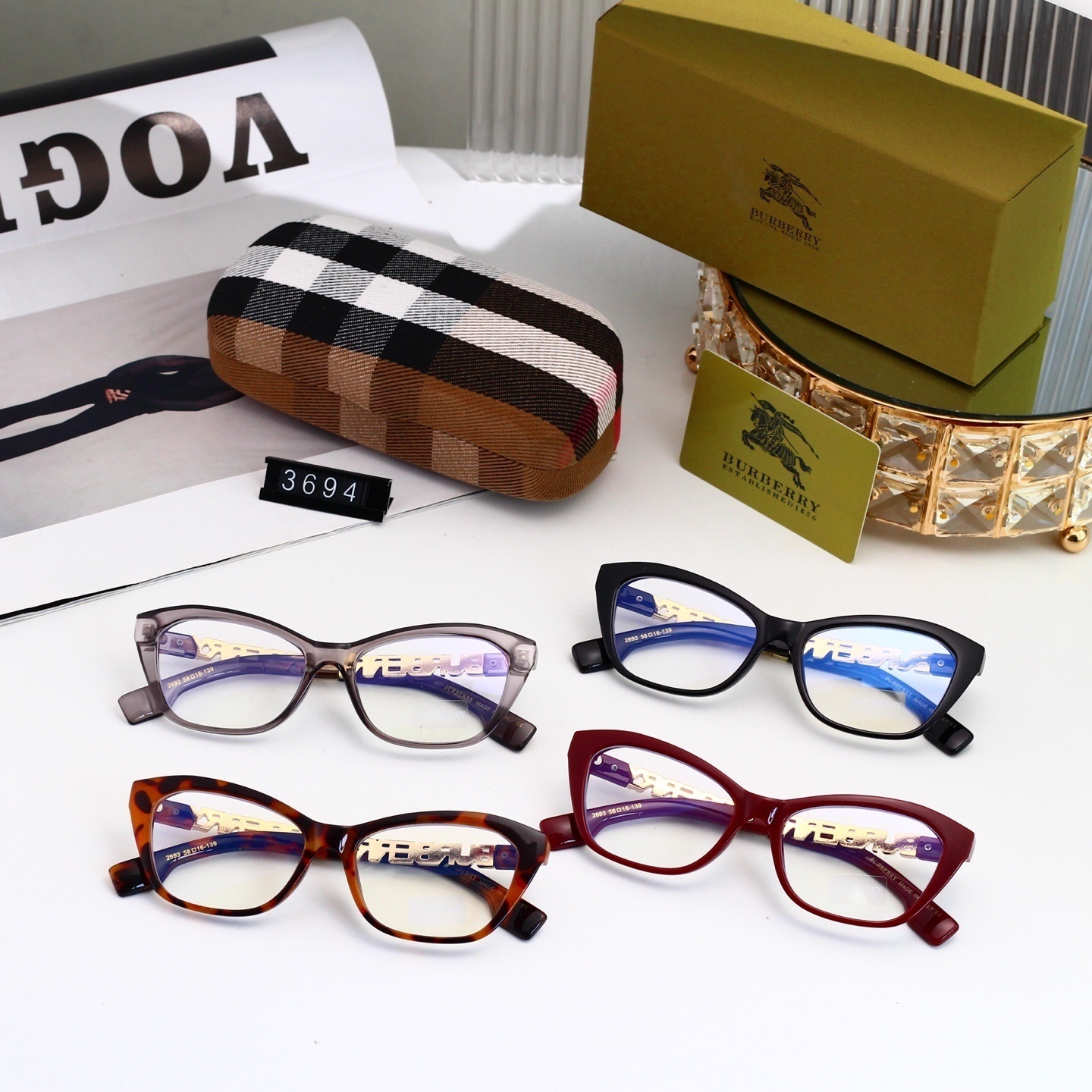 Burberry Retro Cat-Eye Frame Blue Light Blocking Glasses 3694