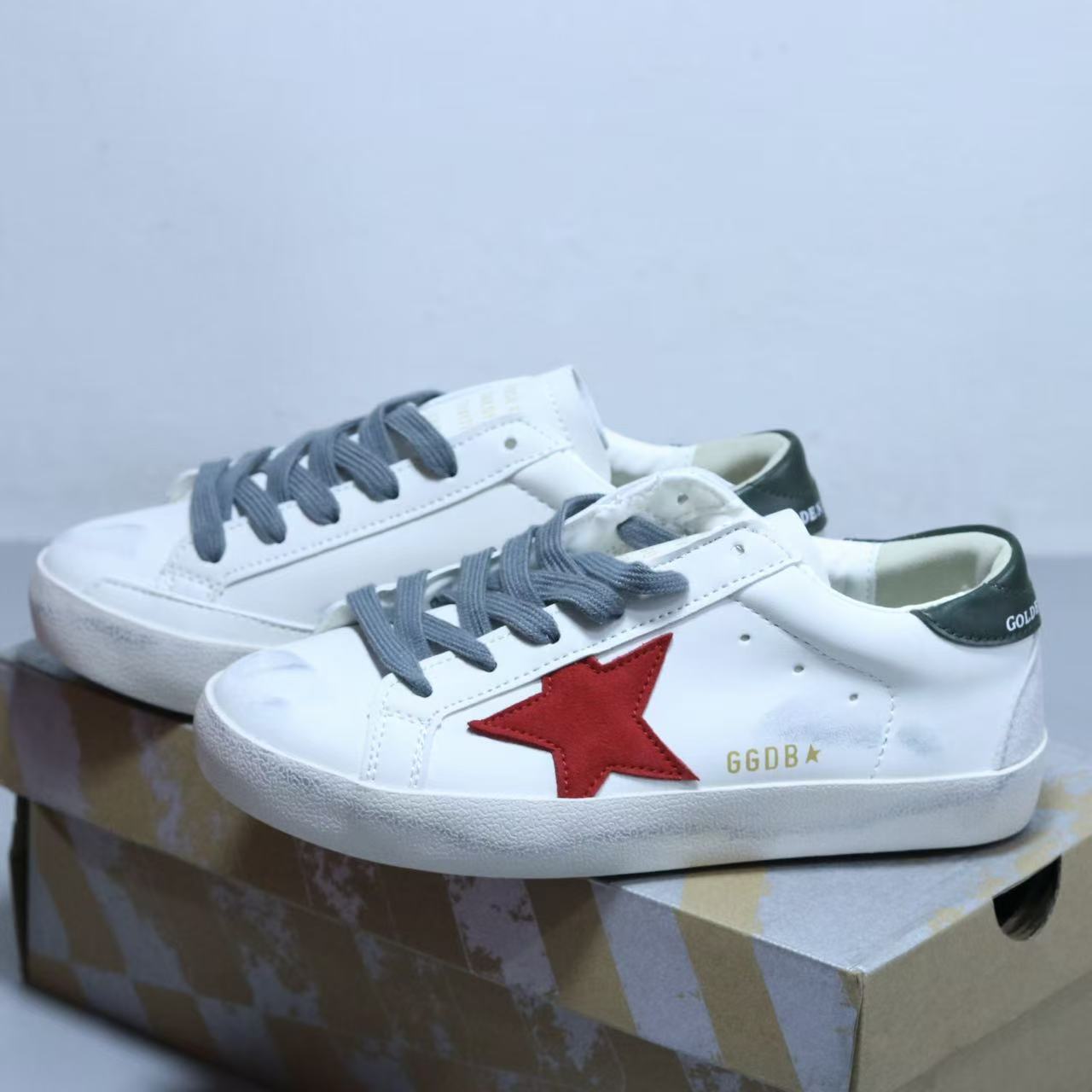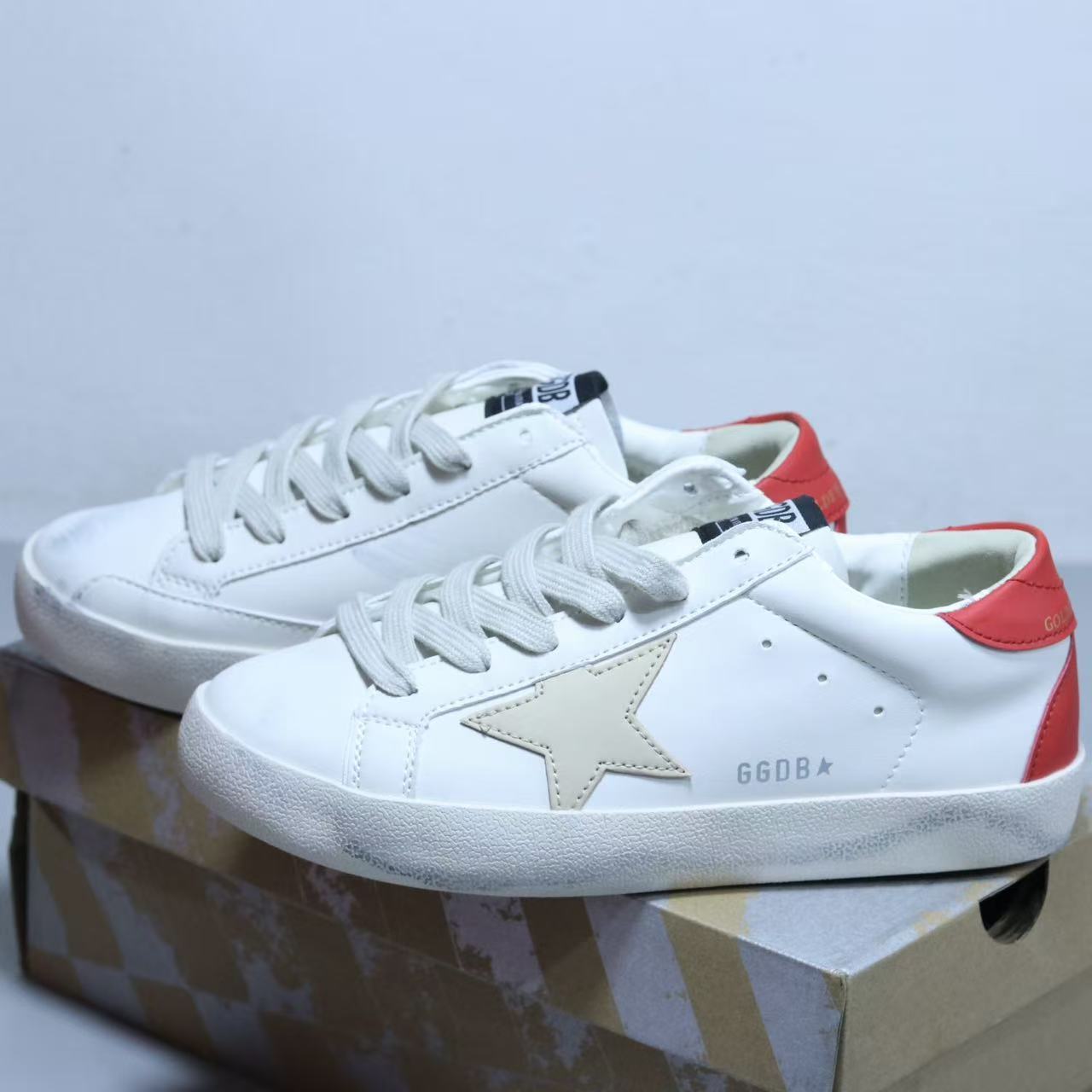Golden Goose Classic Super-Star Low-Top Sneakers with Red Star