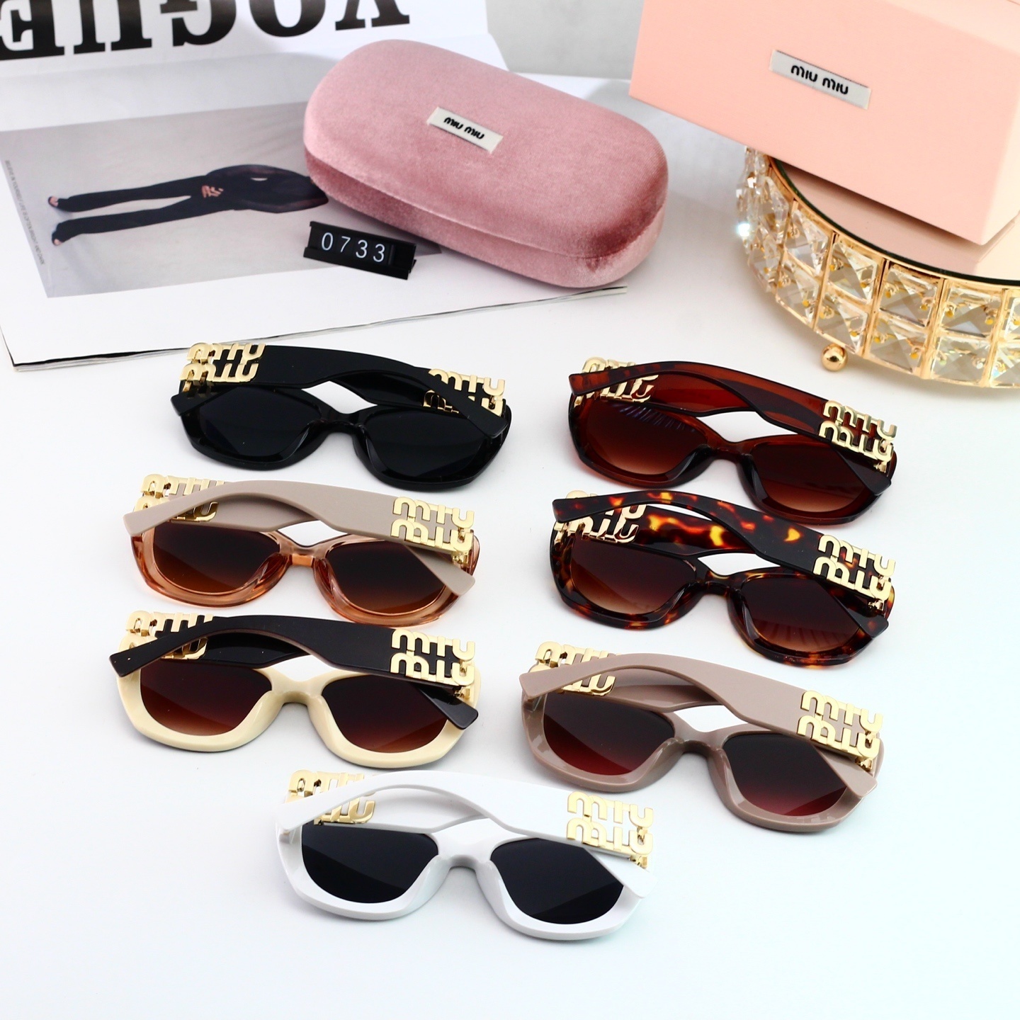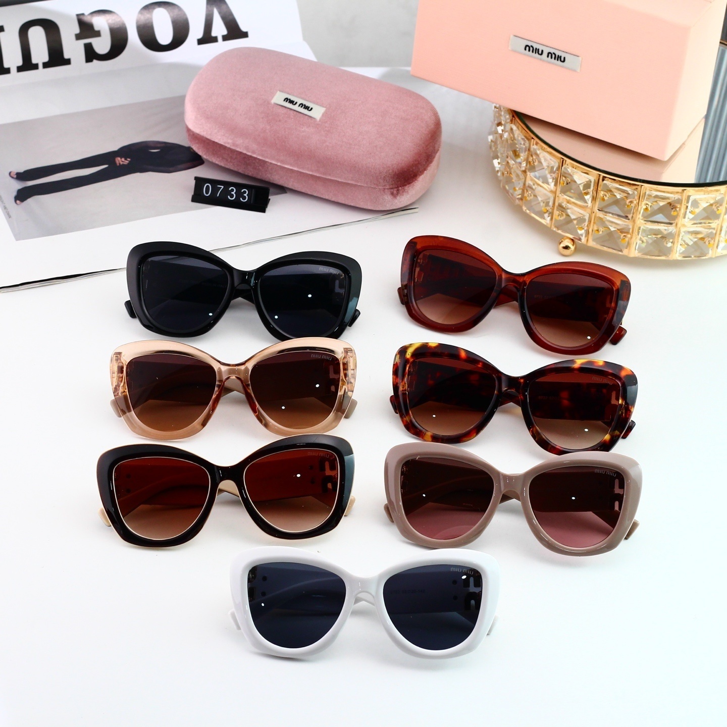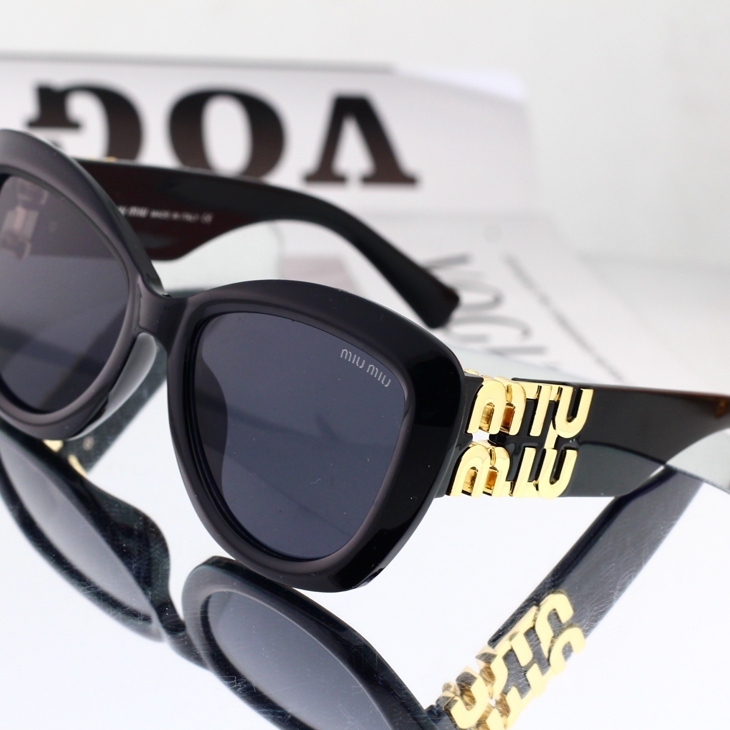 Miu Miu Classic Logo Temple Cat-Eye Sunglasses for Women 0733